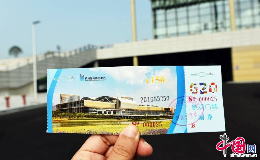 2016年9月25日,浙江省杭州市,拍摄到的G20杭州峰会的主会场门票。中国网图片库 龙巍摄影