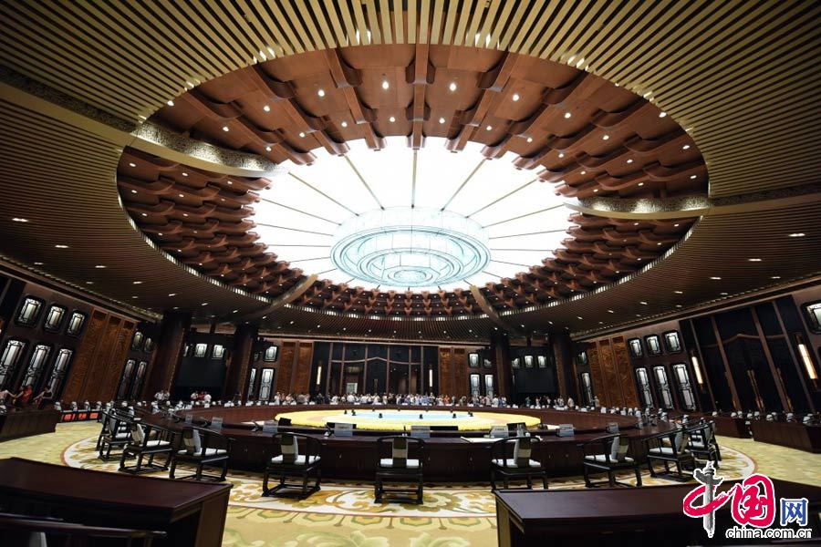 2016年9月25日,浙江省杭州市,参观者在G20杭州峰会主会场的主会客厅参观。中国网图片库 龙巍摄影