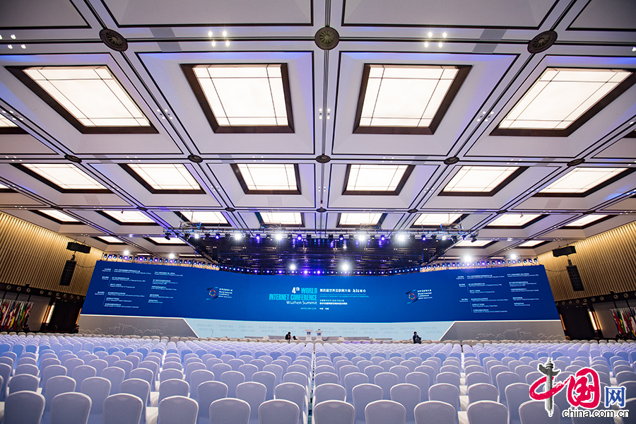 乌镇互联网国际会展中心乌镇厅,会议设备进入最后的调试阶段。 中国网记者 张若梦 摄