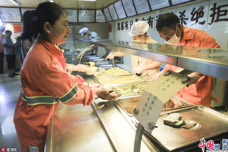 2018年8月2日中午11时,在杭州市勾庄好运路雨花斋餐厅,市民们持续井然地等候免费午餐,当日供应的免费午餐有红烧豆腐干、炒花菜、长豇豆和毛豆。常言道,“天下没有免费的午餐”,这家餐厅从2013年开始免费提供素食,不收一分钱,吃饭管饱。目前每天来店里的人,有近250人左右,多数是环卫工人和年长的务工者,还有附近小区的居民,只要是生活困难需要帮助的人都可来用餐。