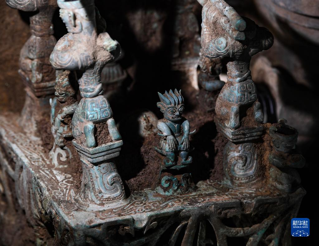 这是在三星堆遗址8号“祭祀坑”拍摄的铜神坛局部(6月1日摄)。新华社记者 王曦 摄